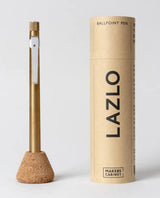 Lazlo is machined from brushed solid brass and comes with a complimentary cork base stand